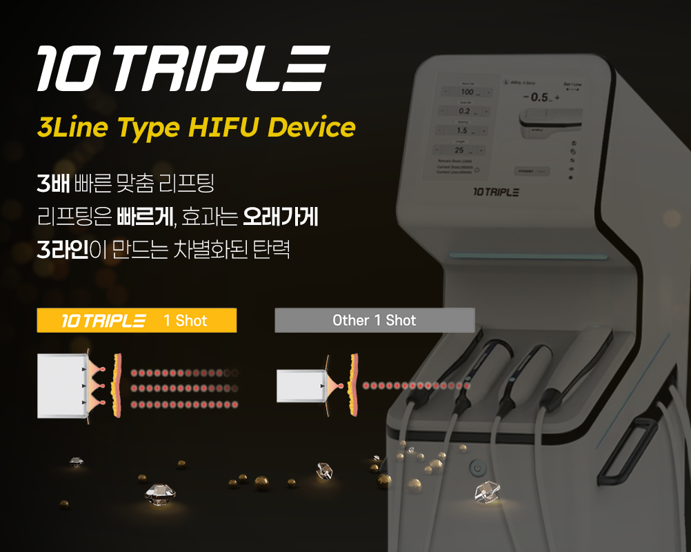 텐트리플만의 3라인 HIFU 기술은 기존 장비보다 더 빠르고 효율적인 시술을 가능하게 하며,